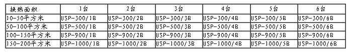 用戶使用單位可根據本單位在裝板式換熱器的數量,單臺板式換熱器的換熱面積,在根據下表,完成設備的選型。